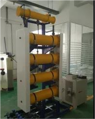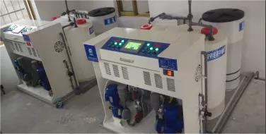 次氯酸鈉消殺方式和氯氣基本相同,消毒副產(chǎn)物和氯氣也基本相同,但所產(chǎn)生的致癌物質(zhì)要明顯少于氯氣,其來源主要有兩種,一種是成品的次氯酸鈉,一種是電解制備的次氯酸鈉,我國污水處理廠兩種都有采用,其中成品次鈉有效氯含量較高,為10%,電解次鈉發(fā)生器依照有無陽離子交換膜可分為兩種,采用陽離子膜的二氧化氯發(fā)生器我國采用的極少,主要為無陽離子膜的二氧化氯發(fā)生器,所制取的二氧化氯發(fā)生器的濃度均≤1%。